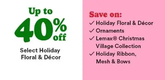 Hurry in and save! Shop in store and get up to 40% off on select holiday floral & décor.