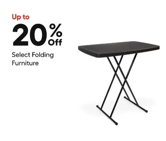 Hurry in and get up to 20% off on select folding furniture in store for a limited time.