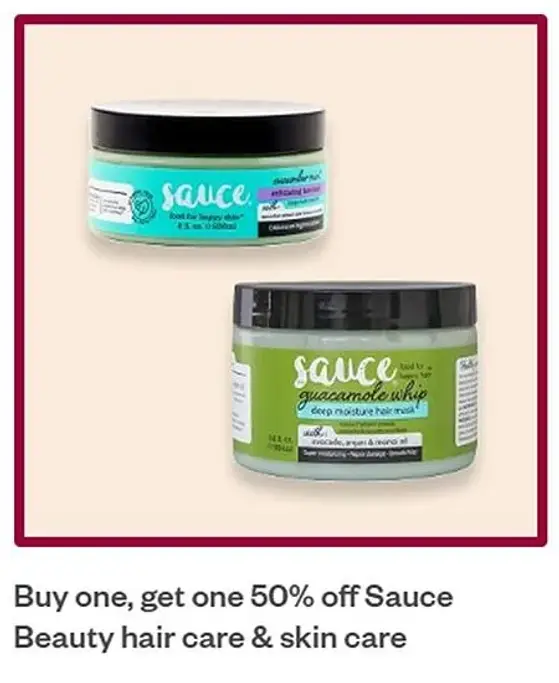 Shop in store and buy one, get one 50% off Sauce Beauty hair care & skin care for a limited time.