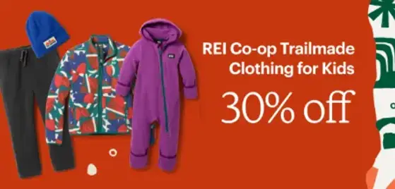 Don't miss out! Shop in store and get 30% off REI Co-op Trailmade clothing for kids.