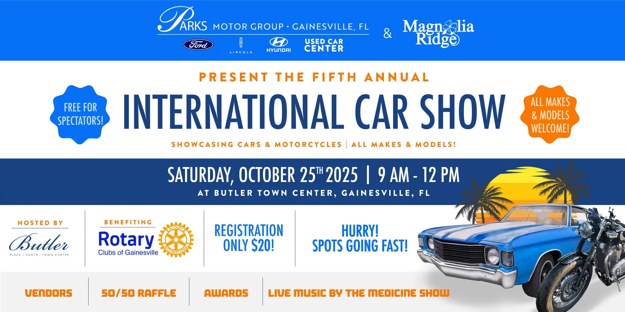 REGISTER TODAY for $20 to show your car or motorcycle at the Fifth Annual International Car Show hosted by Butler Enterprises.